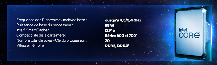 Intel® Core™ i3-13100F, processeur pour PC de Bureau, 4 cœurs (4 P-Cores + 0 E-Core) 12 Mo de Cache, jusqu'à 4,5 GHz |